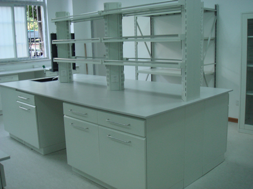 試劑架頂板與臺面同質,耐腐蝕及防水性能更為優越;線槽隱藏了電線及其它管線;高置的插座及供氣考克令使用安全、方便。