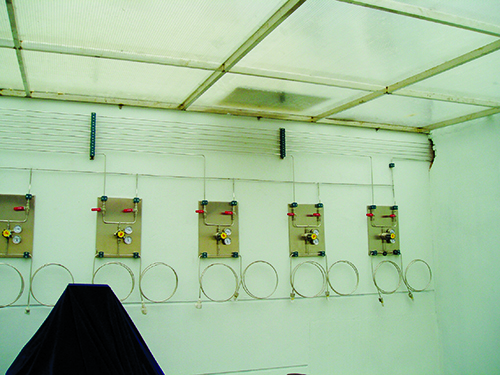 (2)使用壓力氣瓶時,操作人員應站在與氣瓶接口處垂直的位置上。操作時嚴禁敲打撞擊,并經常檢查有無漏氣,應注意壓力表讀數。