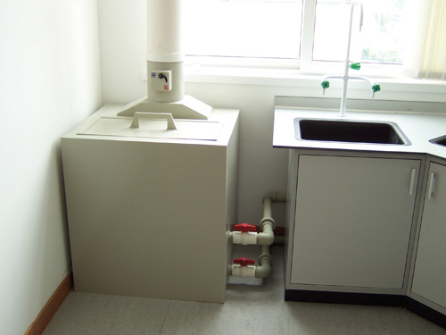 廢水按一定的速度從紫外殺菌器反應腔或流過或臭氧發生器的產生臭氧,水中的微生物受到高強度的UV照射,微生物DNA、RNA內部結構遭到破壞,從而在不使用任何化學藥物的情況下,達到大腸桿菌排放標準,或者采用定期投加氯片的消毒方式。